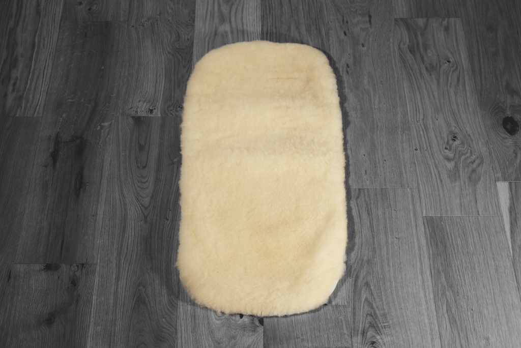 Podloga za otroški voziček je ovalne oblike ter podložena z blagom. Višina volne 3 cm. Zaradi svoje velikosti (70cm x 35cm) je bolj primerna za košaro.